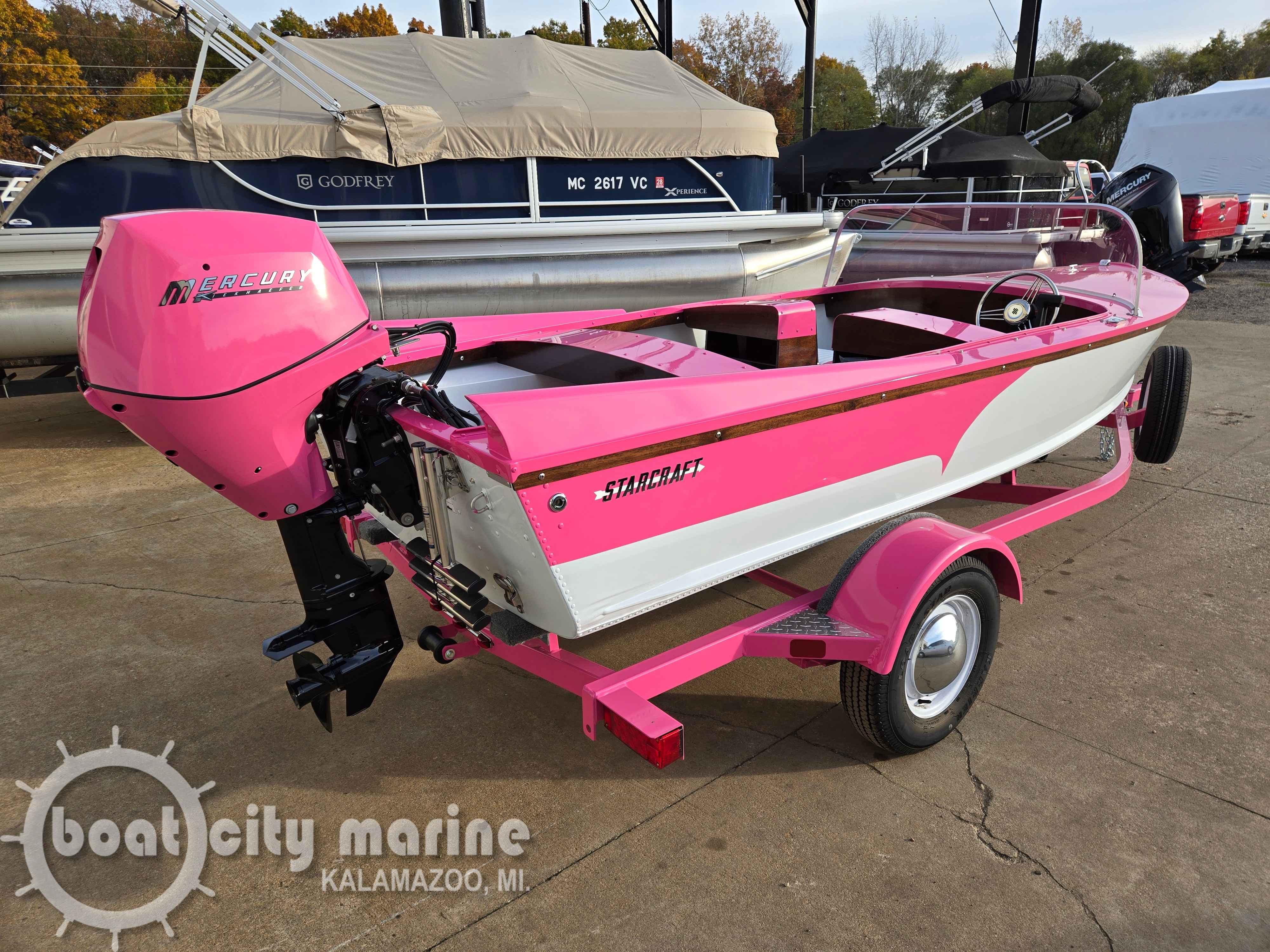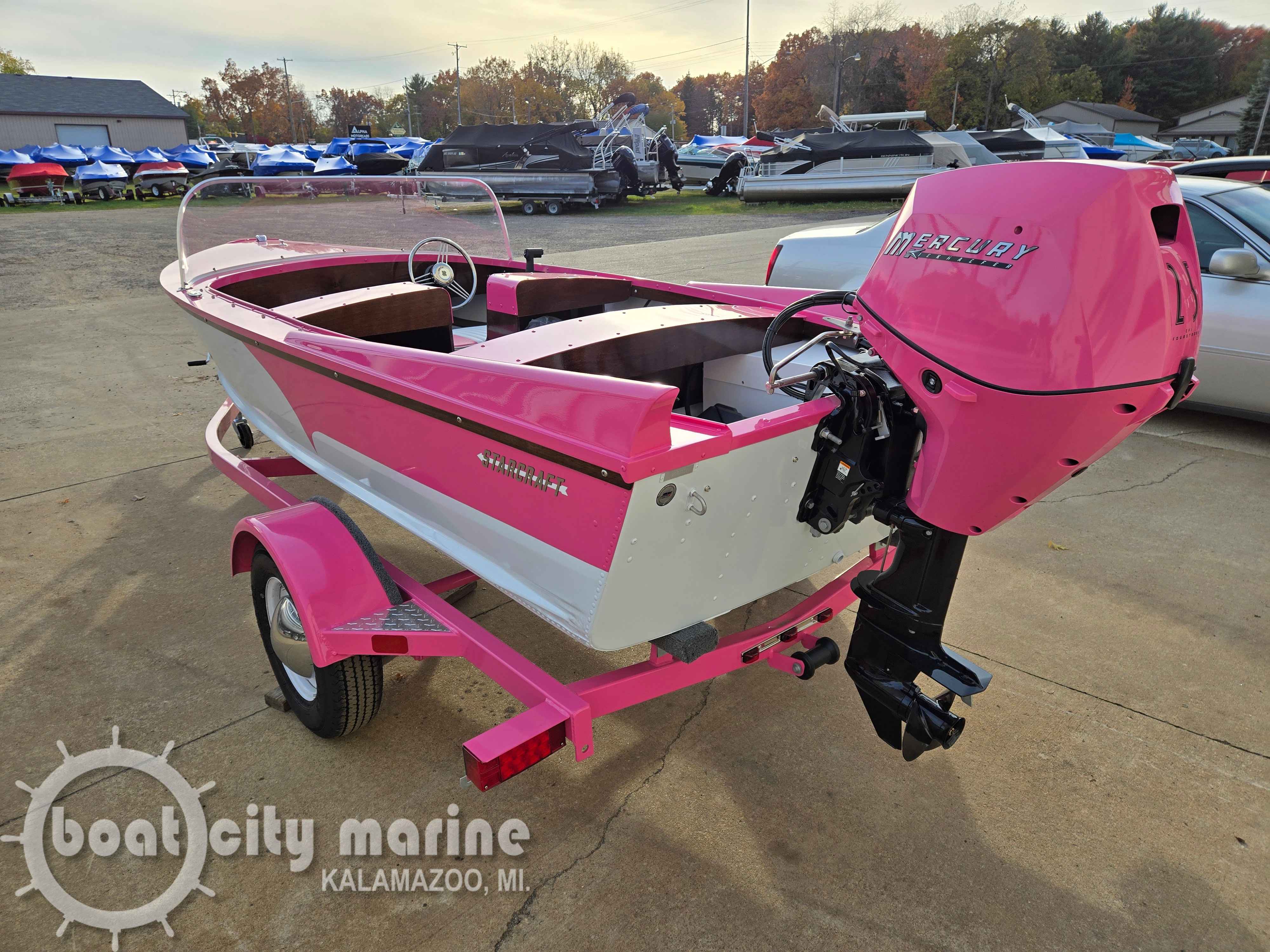 Make a splash this season with the brand-new 2026 Starcraft 57 Ski Champ in eye-catching pink, perfectly matched with a 25 HP Mercury outboard. Compact, fun, and stylish β this boat is built for effortless cruising and good times on the water.